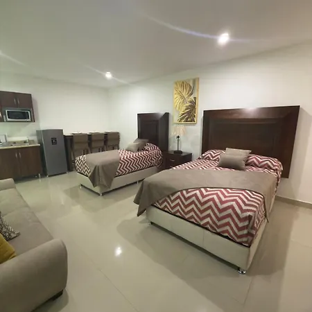 De bezienswaardigheden van de stad zoals het Plaza de la Liberación op op maar 1 km afstand en het Museum voor Kunsten van de Universiteit van Guadalajara vlak om de hoek van het aparthotel, zijn een bezoek de moeite waard. Een korte wandeling brengt je naar Universidad Ateneo Metropolitano de Guadalajara, op wandelafstand van 5 minuten ervandaan. Het Revolutiepark bevindt zich slechts 650 meter van La Casa De Las Palmeras. De SiTren Juan N Cumplido bushalte ligt op circa 5 minuten te voet van dit hotel en het is ook op 3 km van het Jose Cuervo Express treinstation.